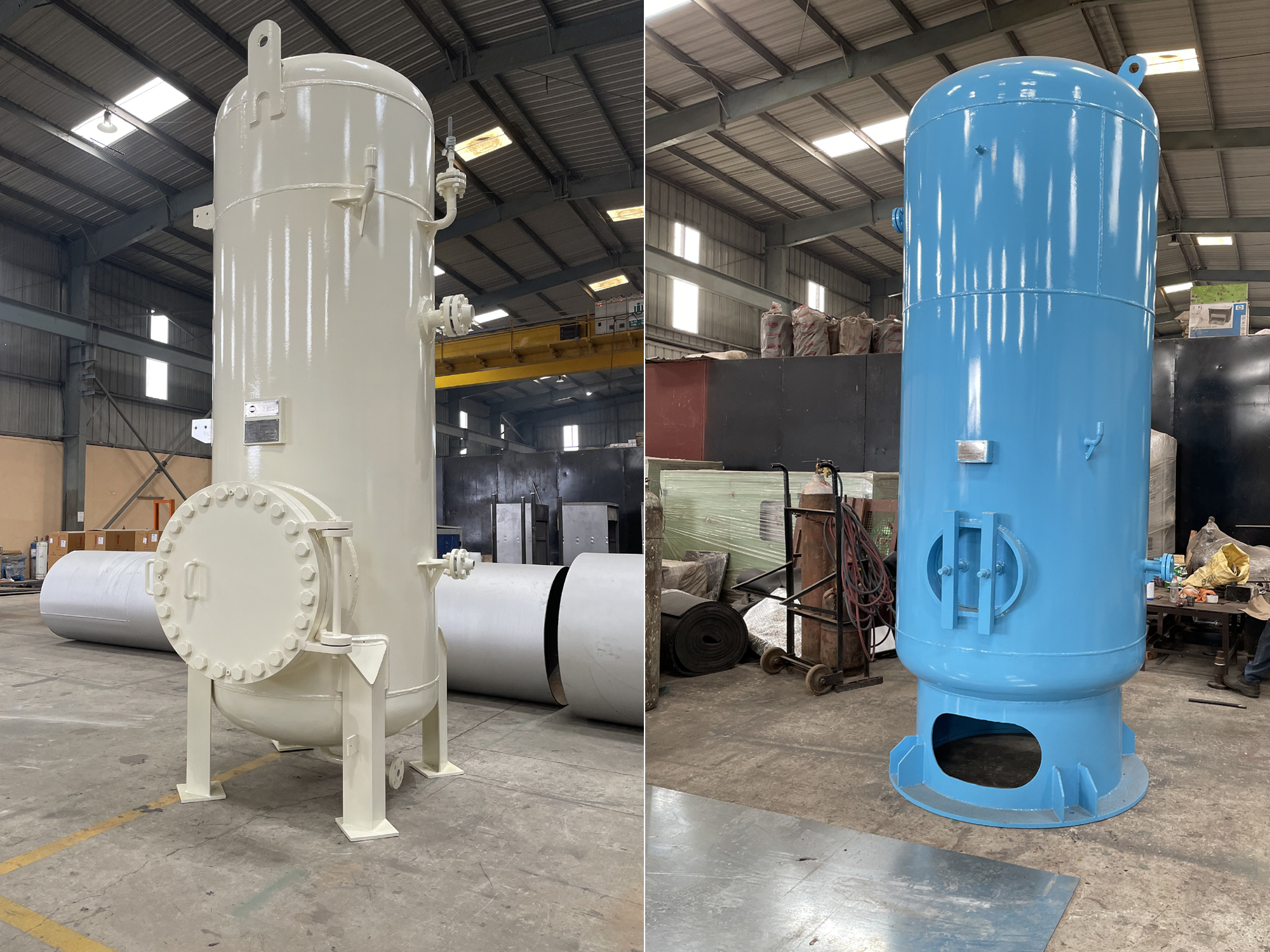 Shalkoot manufactures and supplies Air Receivers (Pressure Vessels) as part of compressor packages as well as a separate equipment. Various range of Air Receives for 100 L to 133m3 capacity and operating pressure up to 70 bar are available. Air receivers are fabricated as per IS:2825 (Air receivers with ASME Sec. VIII Div. I can be provided on request).