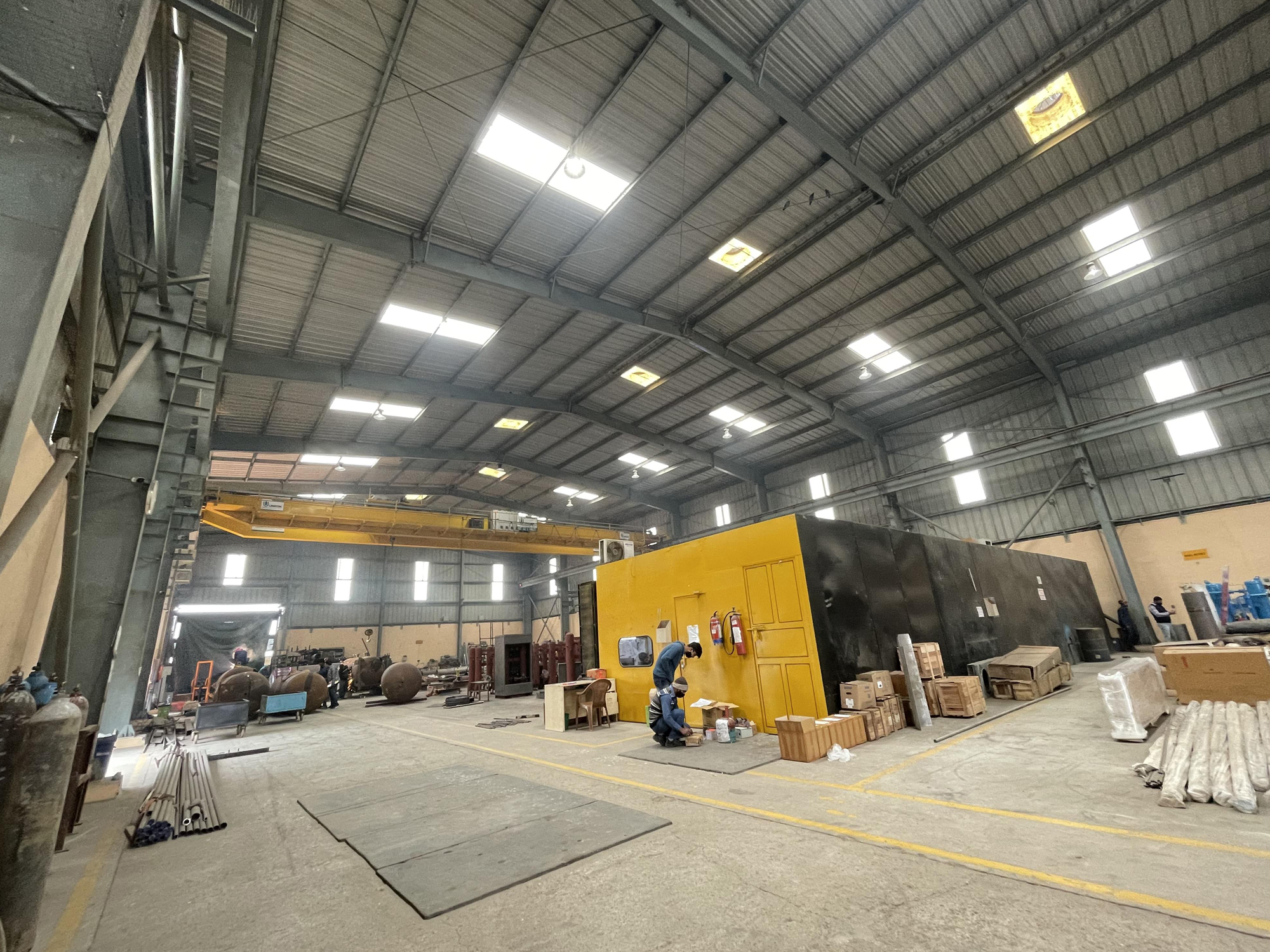 Our office and works is located in the industrial hub of Greater Noida. Our works is spread over 8000 sq. meters. We have overhead cranes, in-house Blasting facility and compressed air system for testing. Our Manpower consists of well qualified and experienced personnel for Design Engineering, Project Management, Manufacturing, Quality Control, Sales, After Sales & Servicing, all fully backed by our Finance and HR teams.